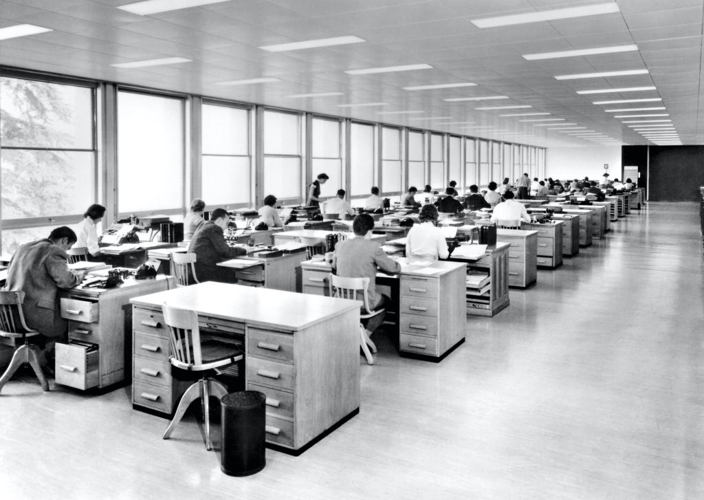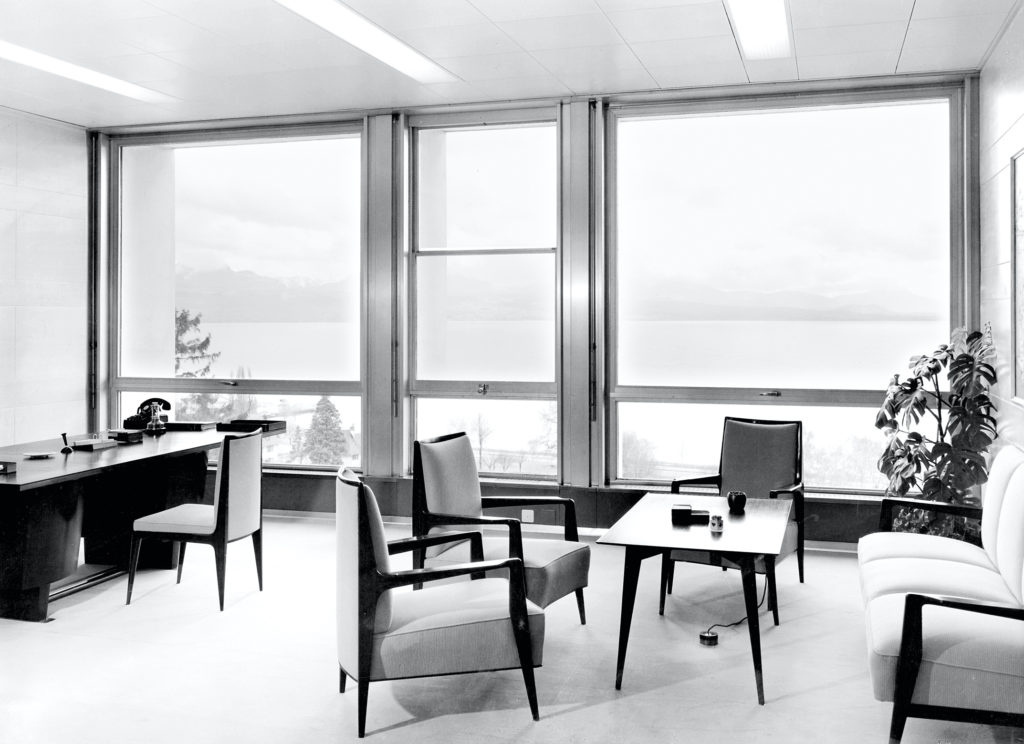 Concept de bureaux ouverts inspiré par le voyage de Jean Tschumi aux États-Unis en 1952.